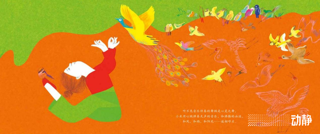 《寻找声音的女孩》一书由著名作家殷健灵著作,英籍华人郁蓉绘图。殷健灵以听障舞蹈家邰丽华的成长经历为蓝本,用诗意化的语言讲述了失聪女孩小米是如何感知声音,如何通过自己的努力,成长为一名舞蹈家,赢得世界喝彩的故事。
