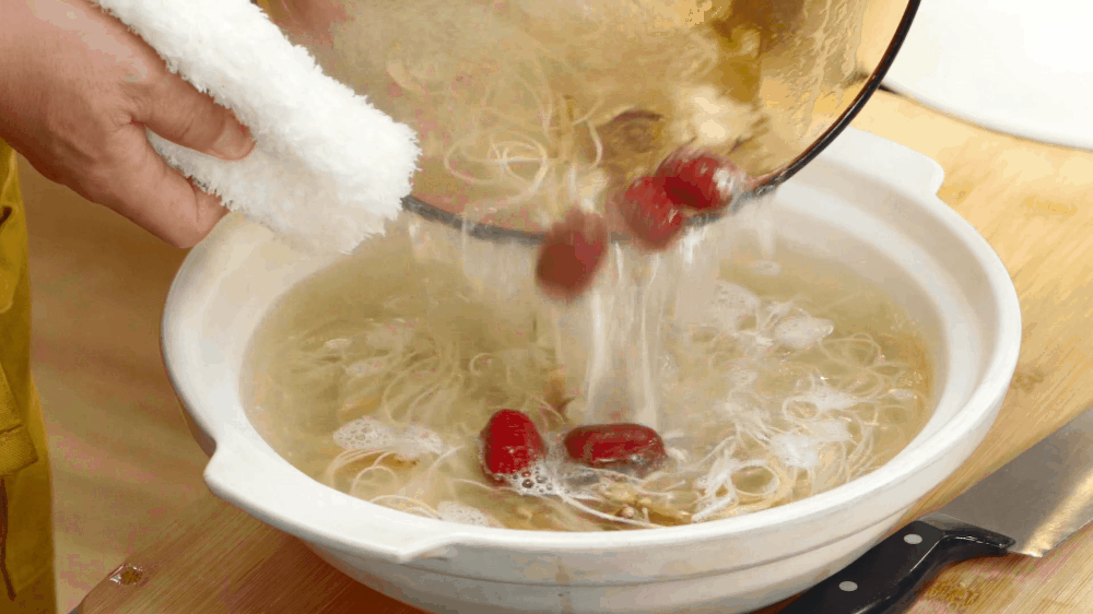 将空心面放入煮水锅跟药材一起煮,然后放入红枣。