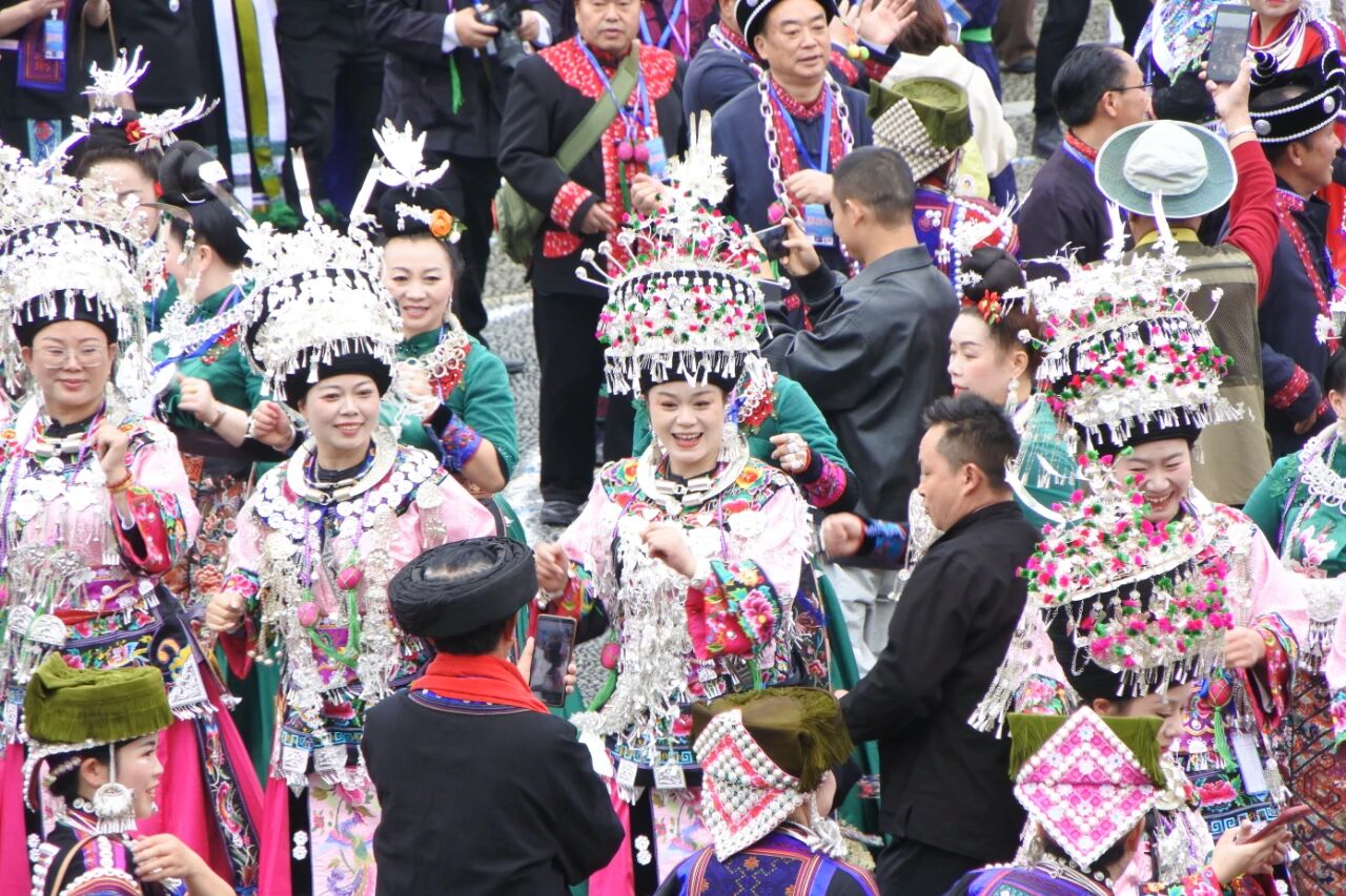 伴随着悠扬的芦笙与欢快的苗歌,本届苗族走亲民俗文化活动盛装巡游正式拉开帷幕。身着璀璨银饰、精美绣衣的苗族同胞列队而行,银铃叮当、彩衣翻飞,将街道装点成流动的民族文化长廊,吸引了群众驻足围观、拍照留念。