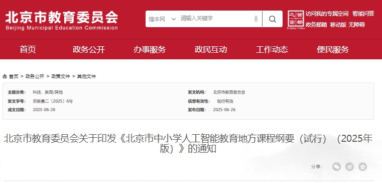 《北京市中小学人工智能教育地方课程纲要(试行)(2025年版)》解读 | 培育面向未来的“数字”公民