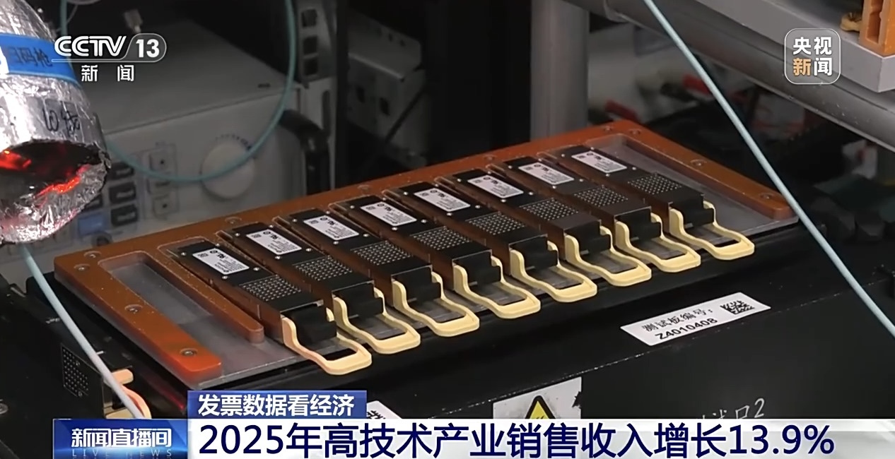 国家税务总局税收大数据分析显示,2025年,我国科技创新与产业创新融合加快,高技术产业销售收入稳步提升。发票数据显示,2025年全国战略性新兴产业茁壮成长,高技术产业销售收入同比增长13.9%,其中高技术制造业、高技术服务业同比分别增长10.1%和16.6%。
