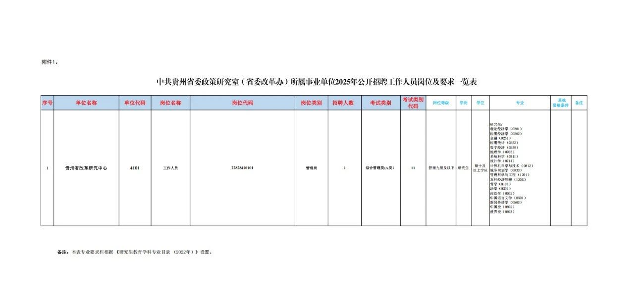 附件1:中共贵州省委政策研究室(省委改革办)所属事业单位2025年公开招聘事业工作人员岗位一览表.xlsx