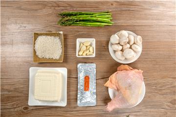 配菜则选了常见的“减脂三件套”:芦笋、口蘑和鸡腿肉。