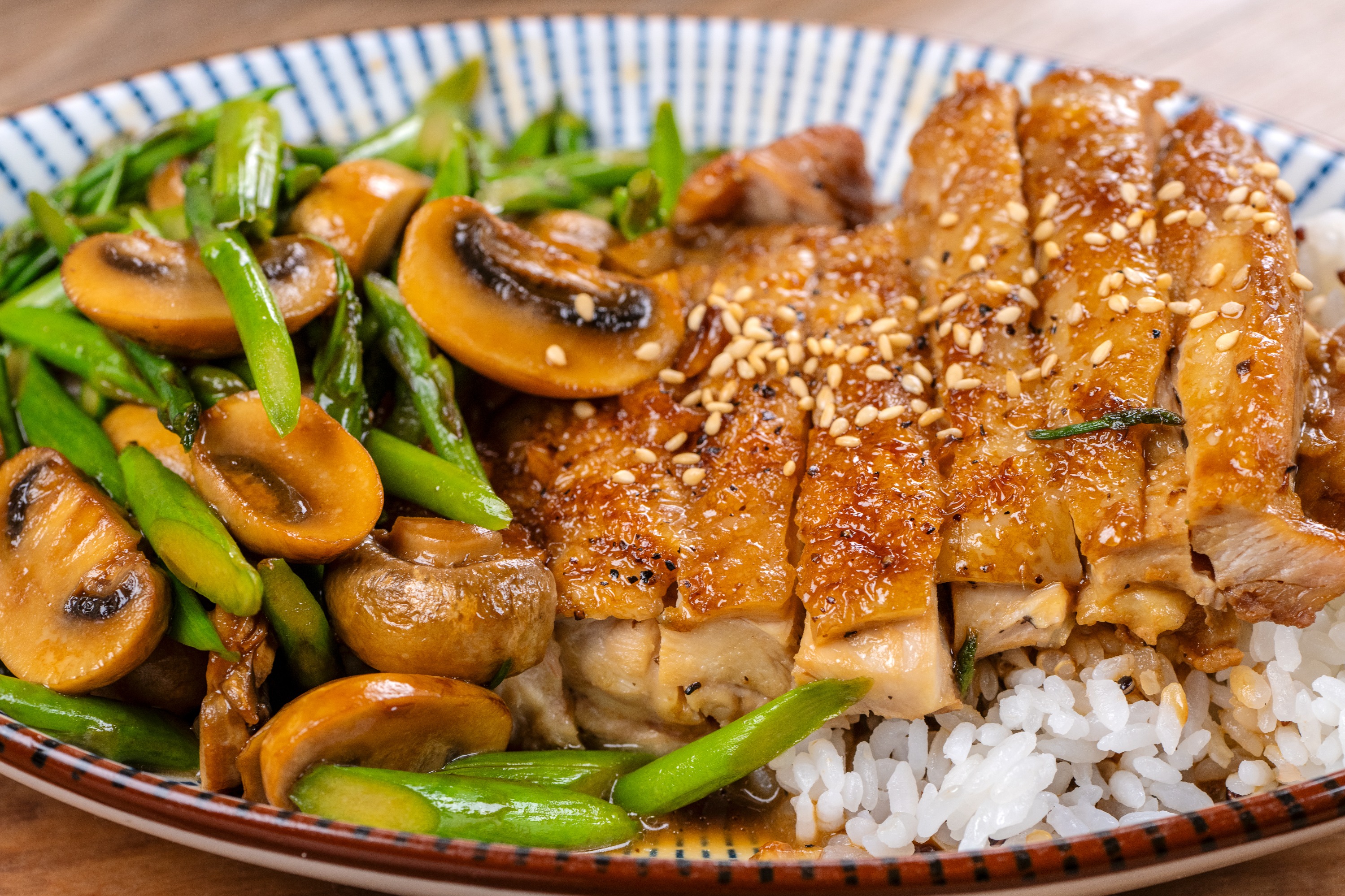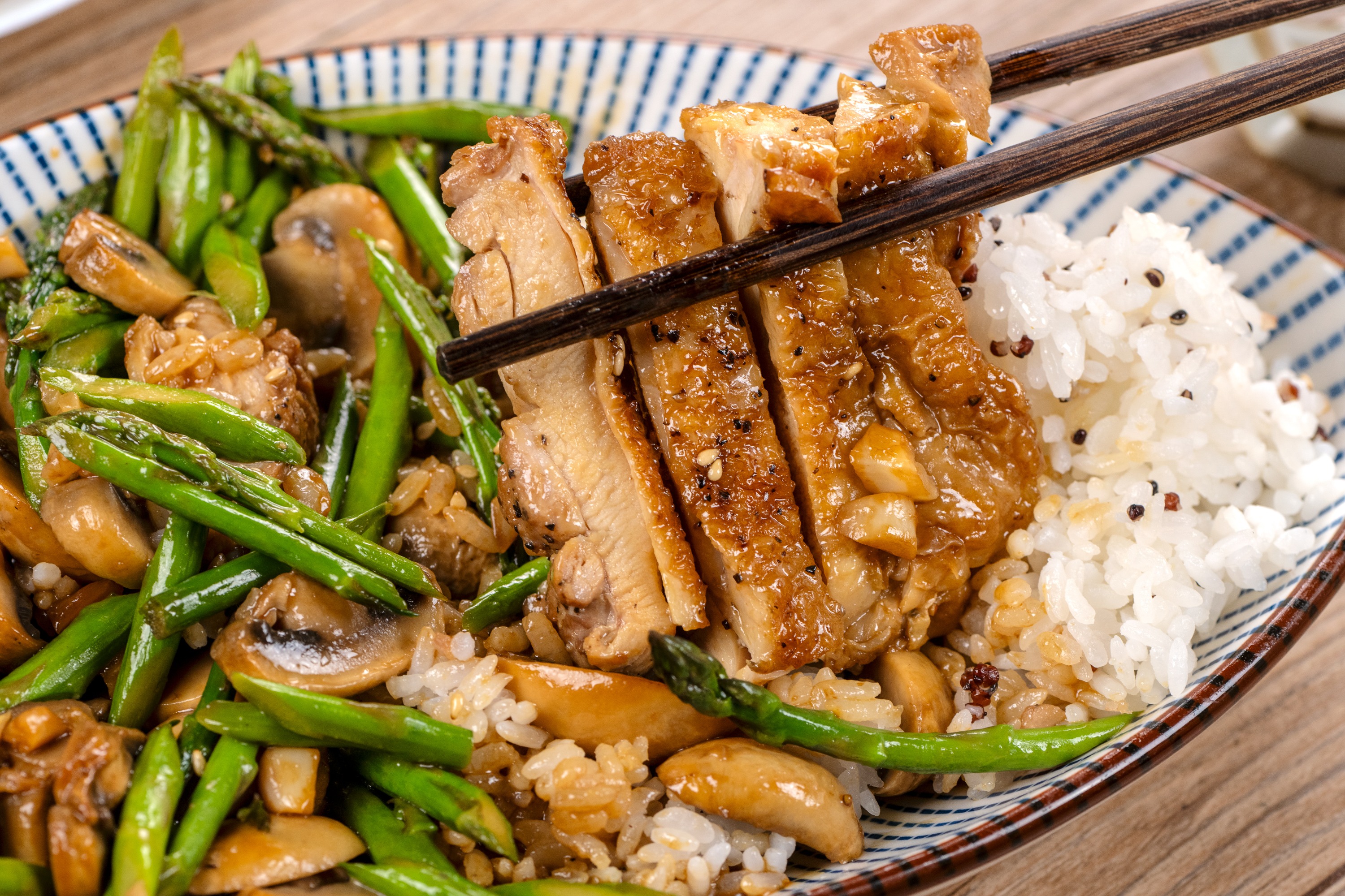 今儿厨房教你们在家自己做一份简单低卡的芦笋蘑菇鸡排饭,不仅性价比高,更适合中国胃,还一点也不耽误咱的减肥大计~