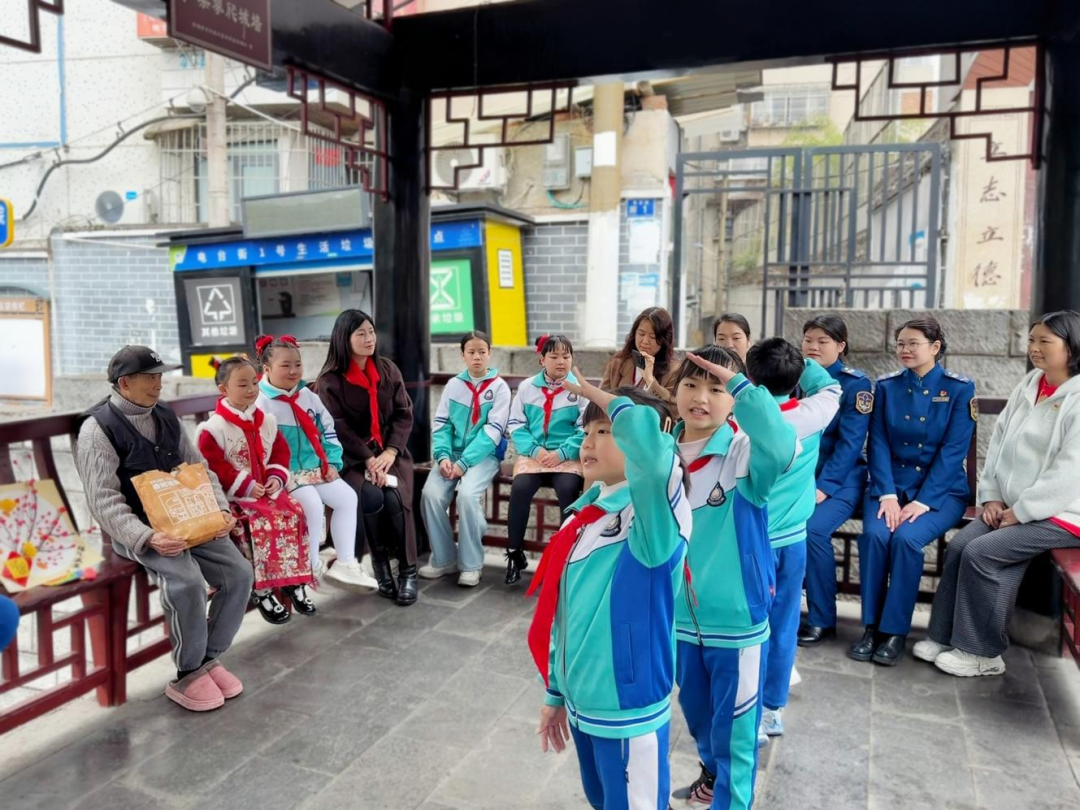 社区亭子里,出门散步的老人们围坐闲谈,地铁工作人员也主动上前,与老人们拉家常、话冷暖,细心询问大家的身体状况与生活起居,并将提前准备的暖心礼品送到老人手中。轻松愉快的氛围里,东山小学的孩子们带来了精心编排的文艺节目,歌曲演唱、诗歌朗诵、拉丁舞轮番登场,纯真的笑容温暖了在场每一位老人的心,现场掌声不断、温情满满。