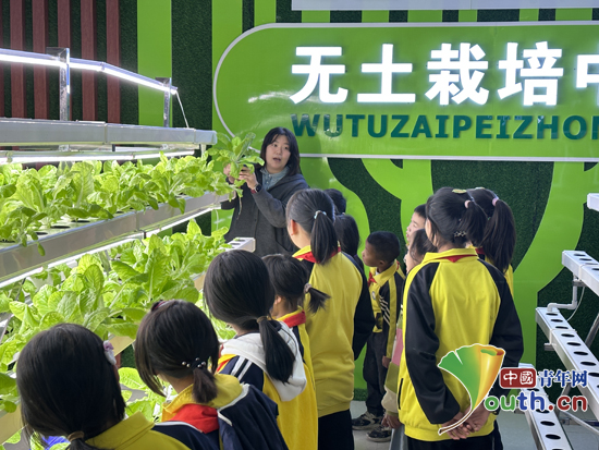 赵婉妤在校外实验基地为学生讲解成熟的小白菜。中国青年网通讯员韩韵琳供图