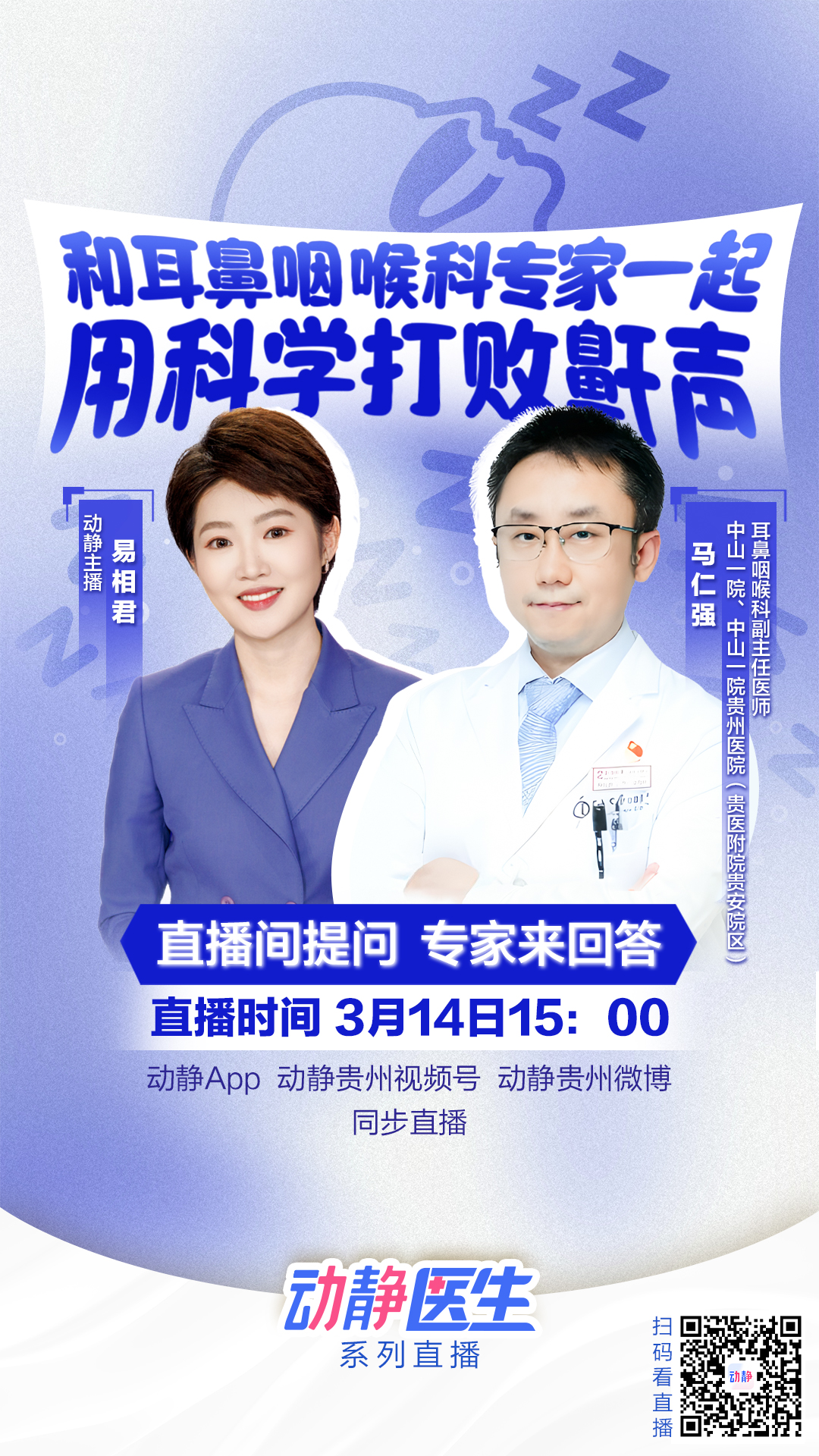 直播预告丨和耳鼻咽喉科专家一起,用科学的方法打败鼾声……