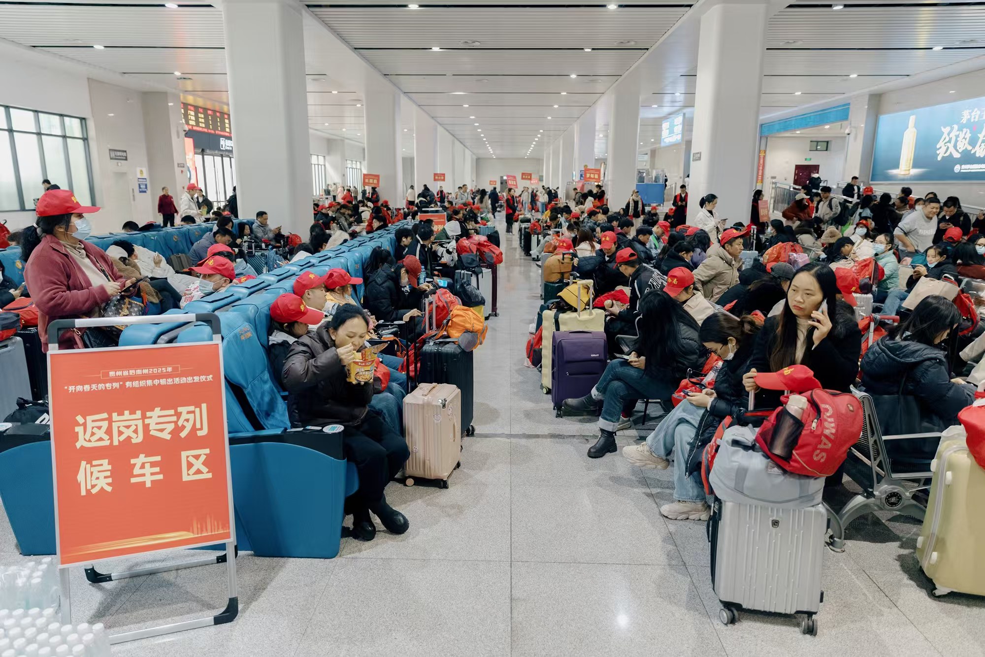 黔南州530余名务工人员乘坐返岗务工专列,共赴广州“春天之约”