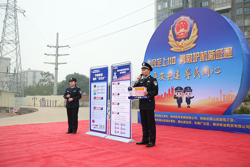 覃天虹(右一)和同事开展反诈骗宣传。李童摄