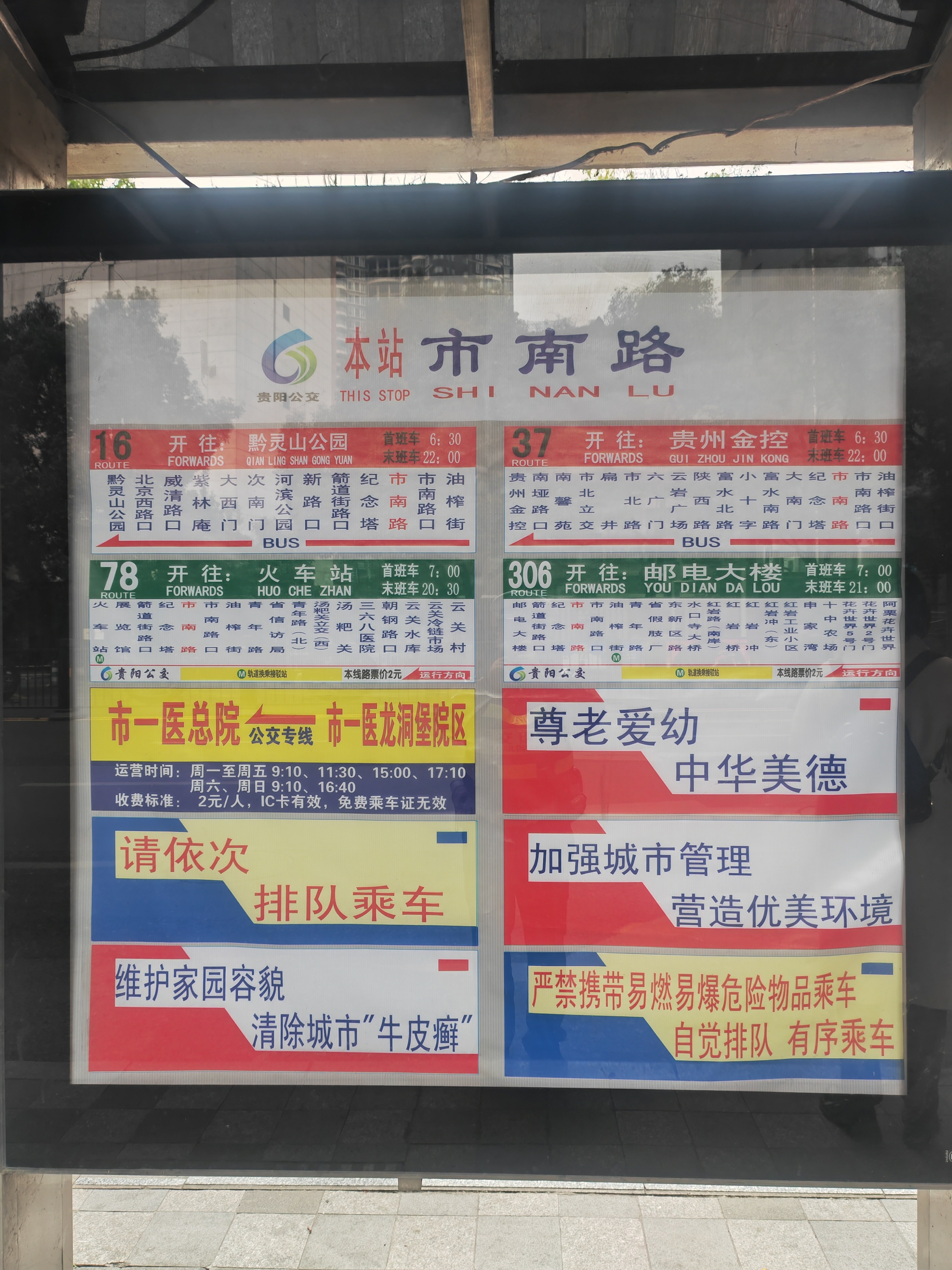 南明区是贵州省会贵阳市的中心城区之一,而市南路是南明区的一条主干道。围绕市南路,附近是繁华的商业区,贵钢虹桥状元小区、南浦路社区等人员密集住宅小区,并且还有纪念塔小学,该路段呈现出人流量大、车流量大、交通需求大的特点。在此情形下,市南路南浦路口往冠洲桥方向的市南路公交站,便成为了一个堵点。