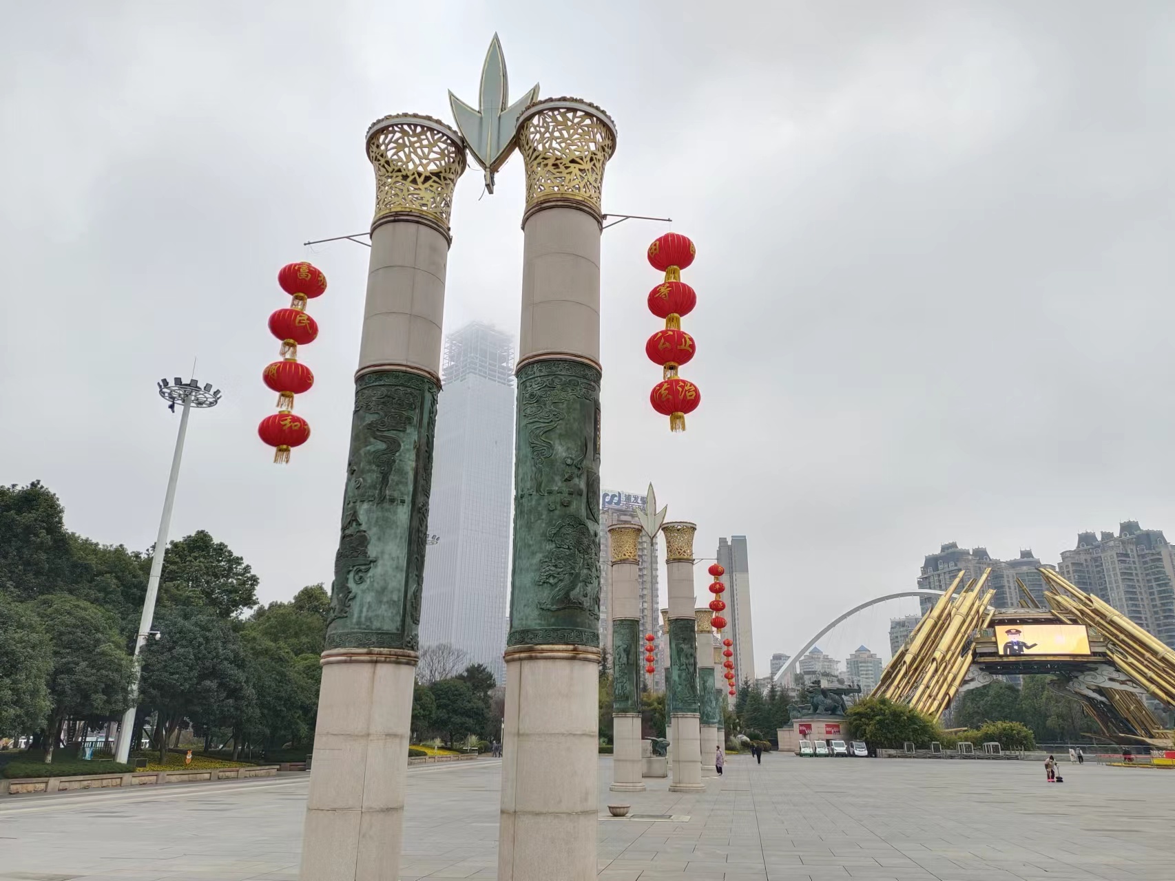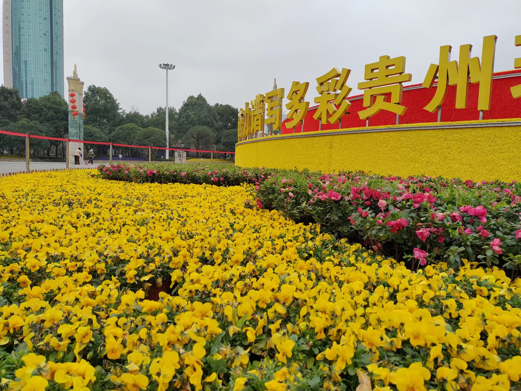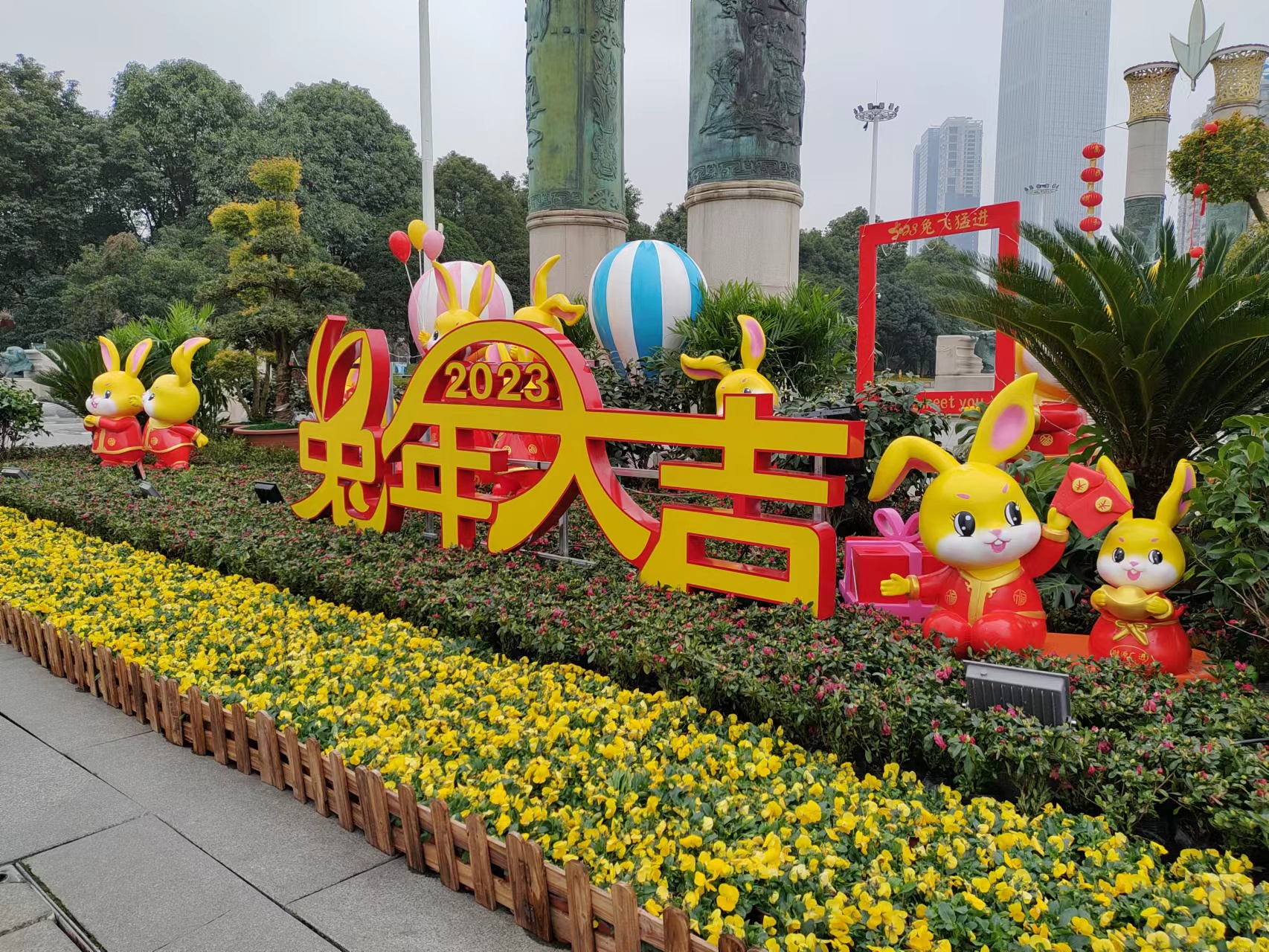 兔年新春佳节临近,贵阳市筑城广场已经装扮一新,火红的灯笼、艳丽的鲜花,还有可爱的兔宝宝,都在向人们传递着新春的问候。