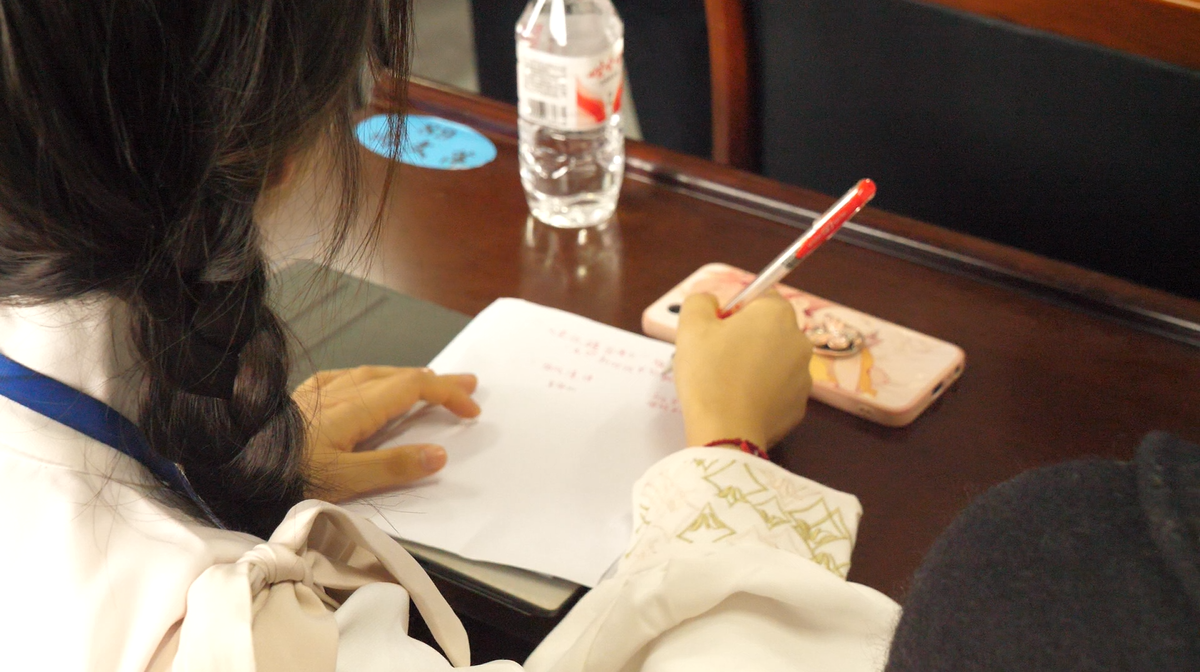 黔南民族师范学院实习老师罗琴芬记录宣讲内容