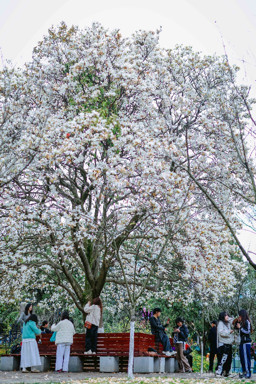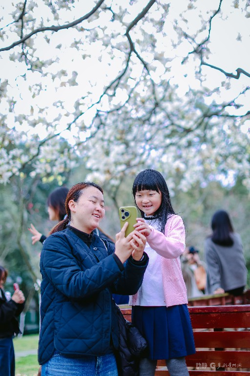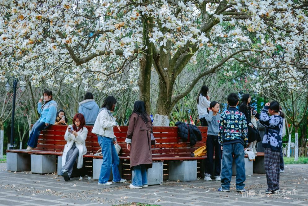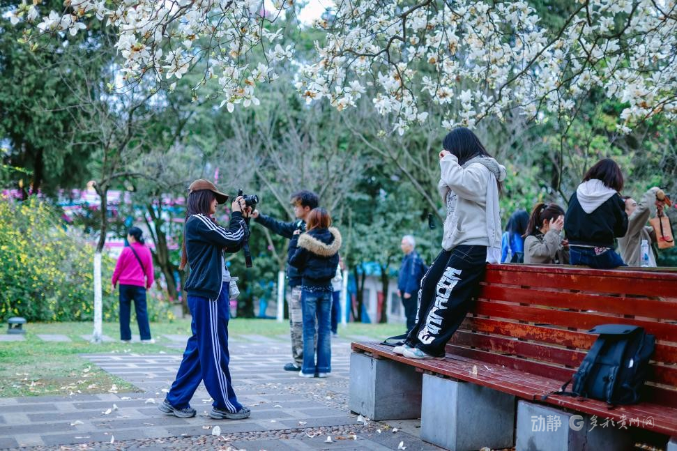 近日,贵阳天气晴好,春意盎然。河滨公园内,玉兰花迎来盛花期,吸引市民游客前来赏花拍照、打卡留念,尽享春日好时光。据了解,园区种植玉兰树近百株,共3个品种,花期预计持续至3月中旬。