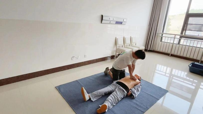 参赛队员们在老师的指导下进行心肺复苏、电转复/电除颤的训练