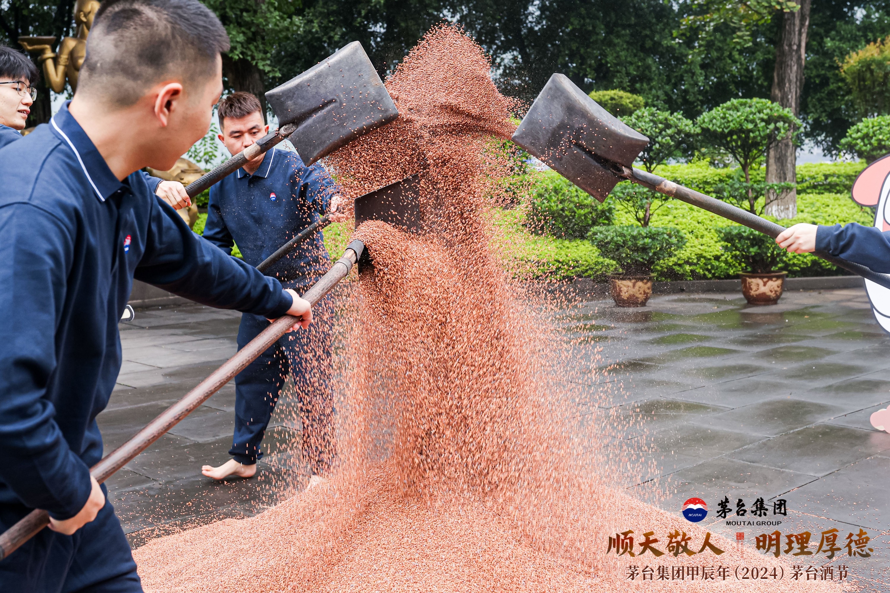 10月11日上午9时9分,以“顺天敬人 明理厚德”为主题的茅台集团甲辰年(2024)茅台酒节在茅台办公大楼广场举行,茅台酒新一年度的重阳下沙生产也正式开始。