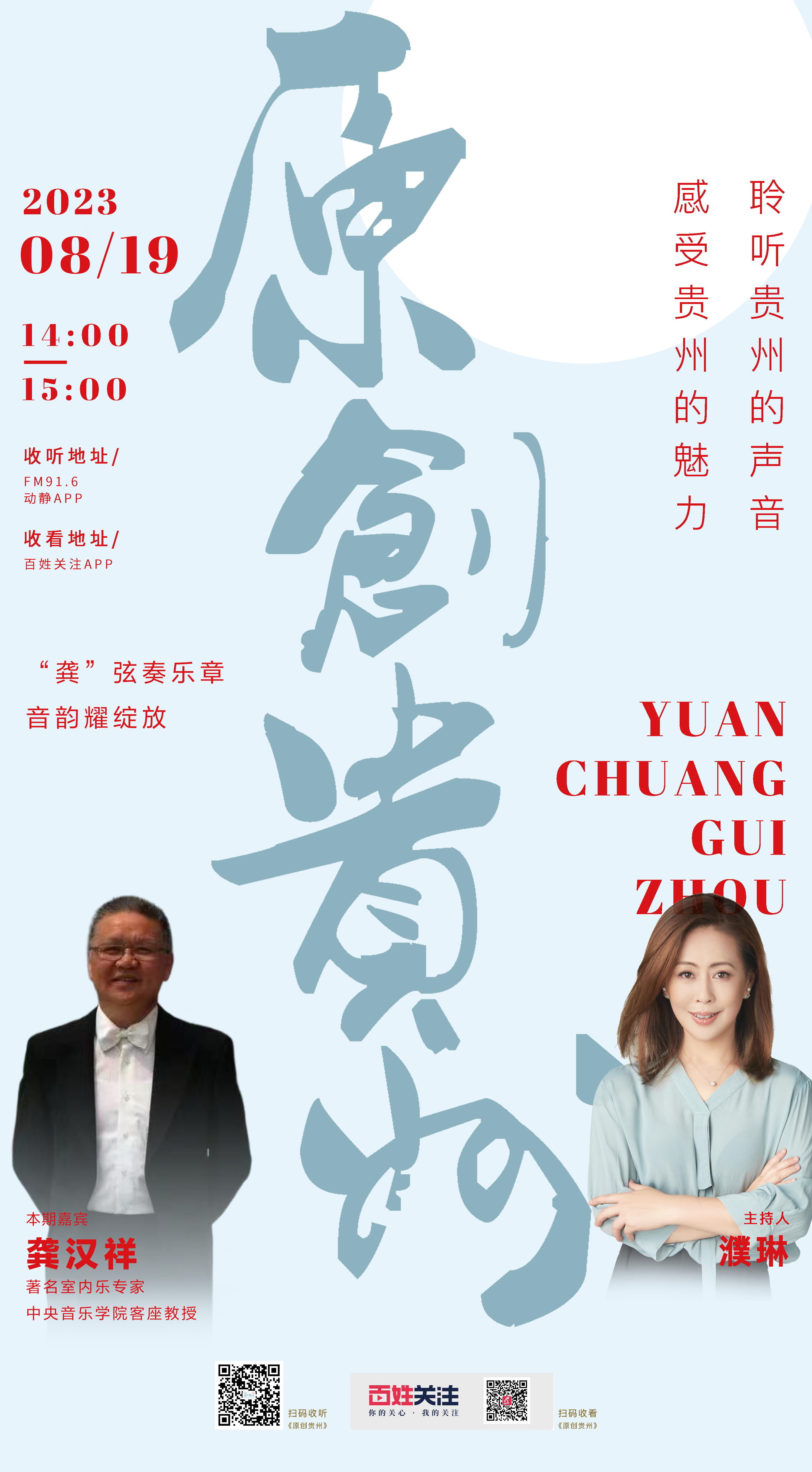 FM91.6贵州音乐广播8月19日14:00,著名室内乐专家、中央音乐学院客座教授龚汉祥走进《原创贵州·对话》,“龚”弦奏乐章 音韵耀绽放。