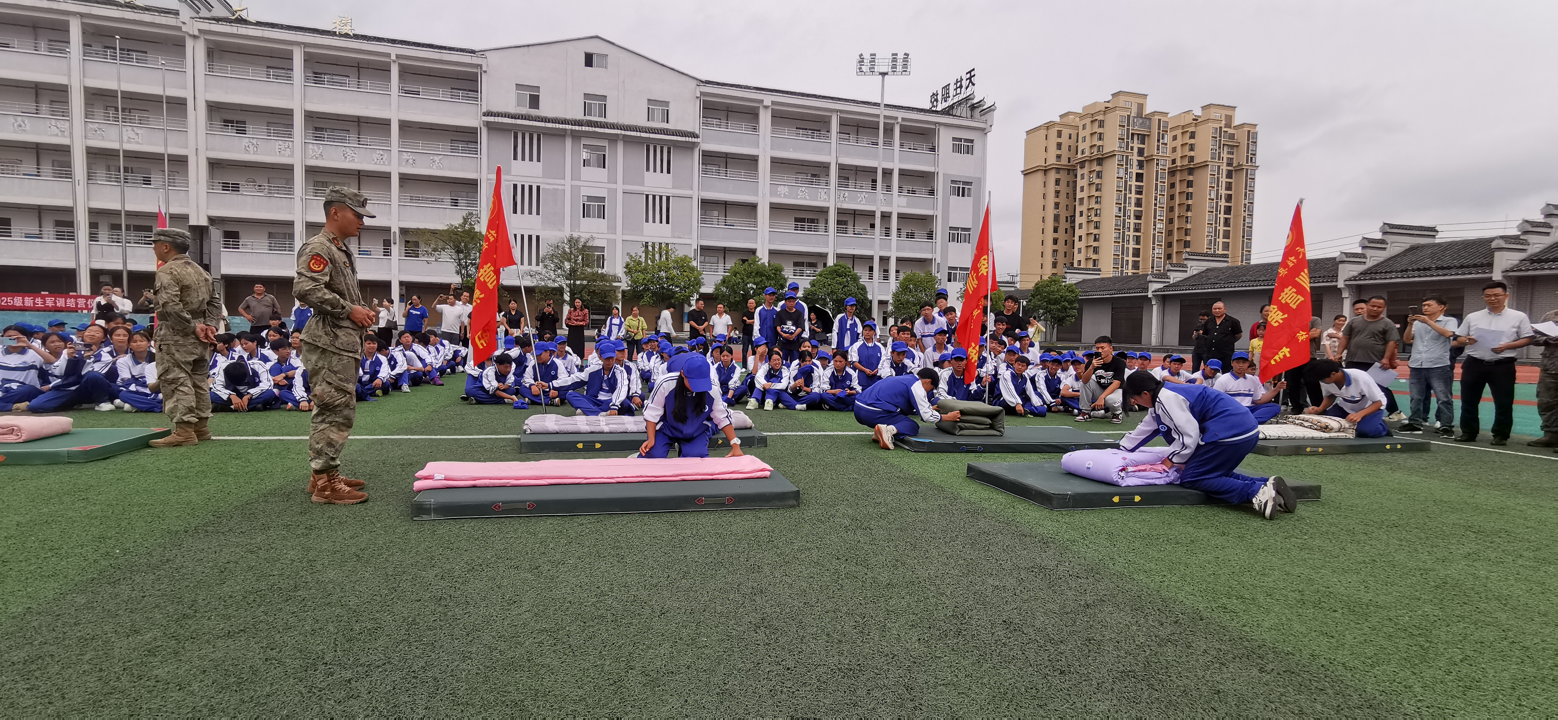 秋高气爽,丹桂飘香。9 月 30 日,天柱县中等职业学校操场上旌旗飘扬、秩序井然,2025 级 1500 余名新生齐聚于此,共同参与军训叠被子比赛。这场以 “规范习惯、锤炼品格” 为核心的特色活动,不仅是新生军训成果的集中展示,更成为学校践行 “校家社协同育人” 理念、深耕寝室管理育人的生动实践。