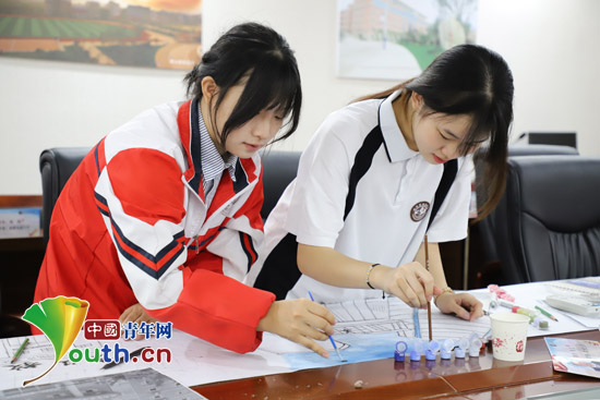 活动中,余庆分队组织贵州省余庆县他山中学学生,以华中师大和他山中学标志性建筑为主体,用笔墨描绘两校发展的画卷,勾勒出对大学生活的美好向往,向华师送上最真挚的祝福。