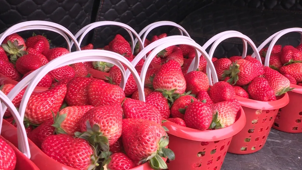 走进普定县盛光草莓园,大棚内果香四溢。种植户骆兴国正忙碌于草莓丛间,精心采摘着成熟的果实。不一会儿,一筐筐鲜嫩欲滴的草莓便被装满,随后被装上车送往城区的水果店。