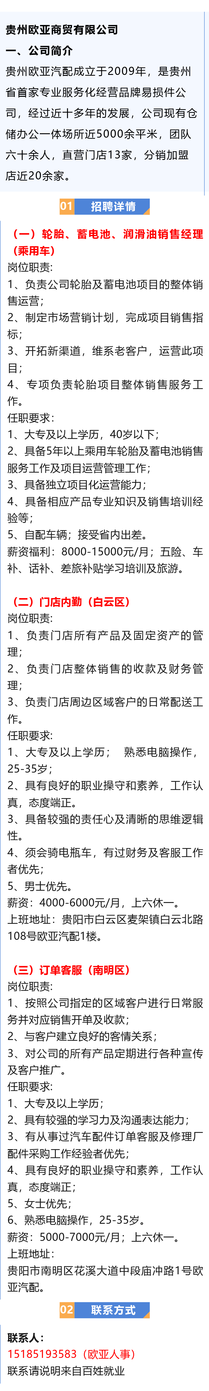 贵阳市花溪区、白云区招聘!月薪可达15000元!