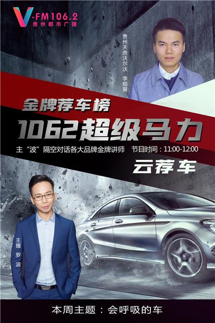 更多精彩内容,关注V-FM106.2贵州都市广播工作日中午11:00-12:00播出的《1062超级马力》,懂车,更懂你!