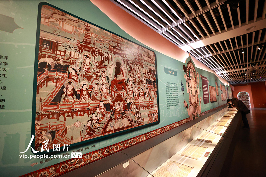 2023年2月16日,北京,参观者在国家典籍博物馆观看“二十世纪初中国古文献四大发现展”。