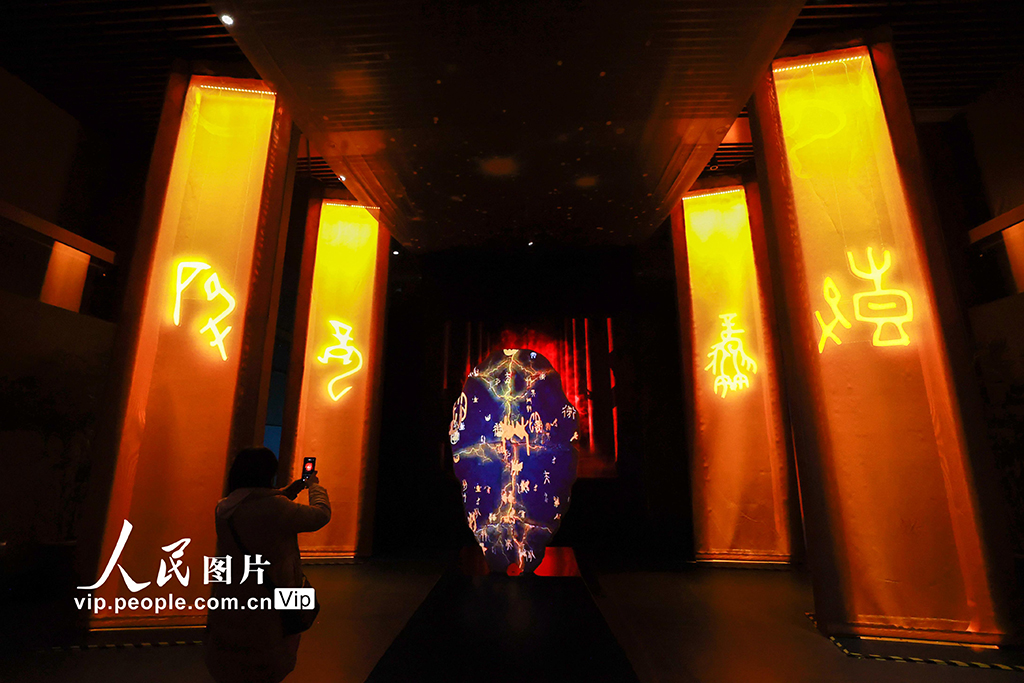 该展览从2月15起正式开展。展览共分“殷墟甲骨”“居延汉简”“敦煌遗书”“明清档案”四个专题,集中展示国家图书馆馆藏甲骨、敦煌遗书,甘肃简牍博物馆藏汉简、中国第一历史档案馆藏明清档案等多种类型的珍贵文物文献共计249种、382件。陈晓根摄(人民图片网)