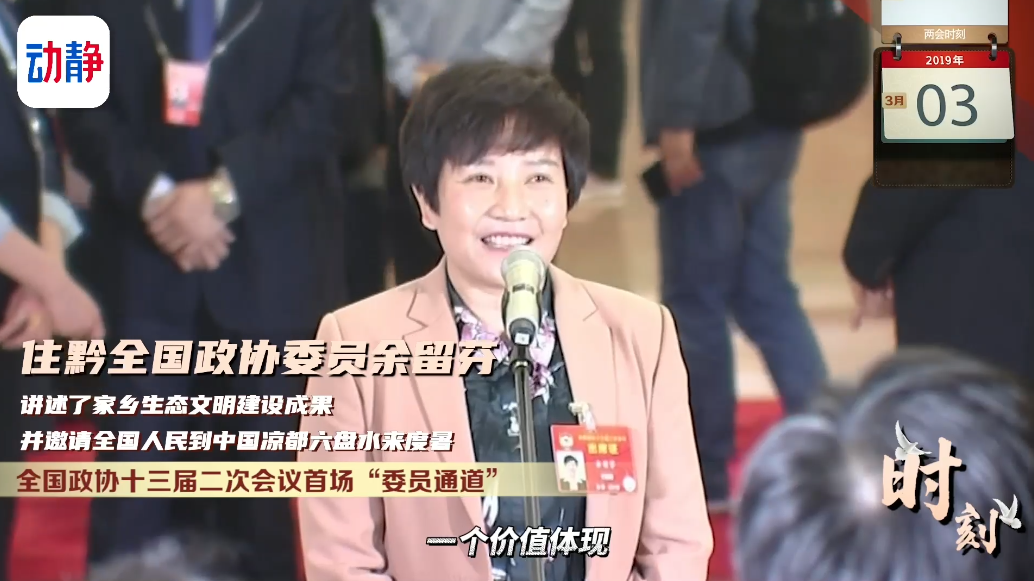 全国政协十三届二次会议首场“委员通道”,住黔全国政协委员余留芬讲述了家乡生态文明建设成果,并邀请全国人民到中国凉都六盘水来避暑度假。