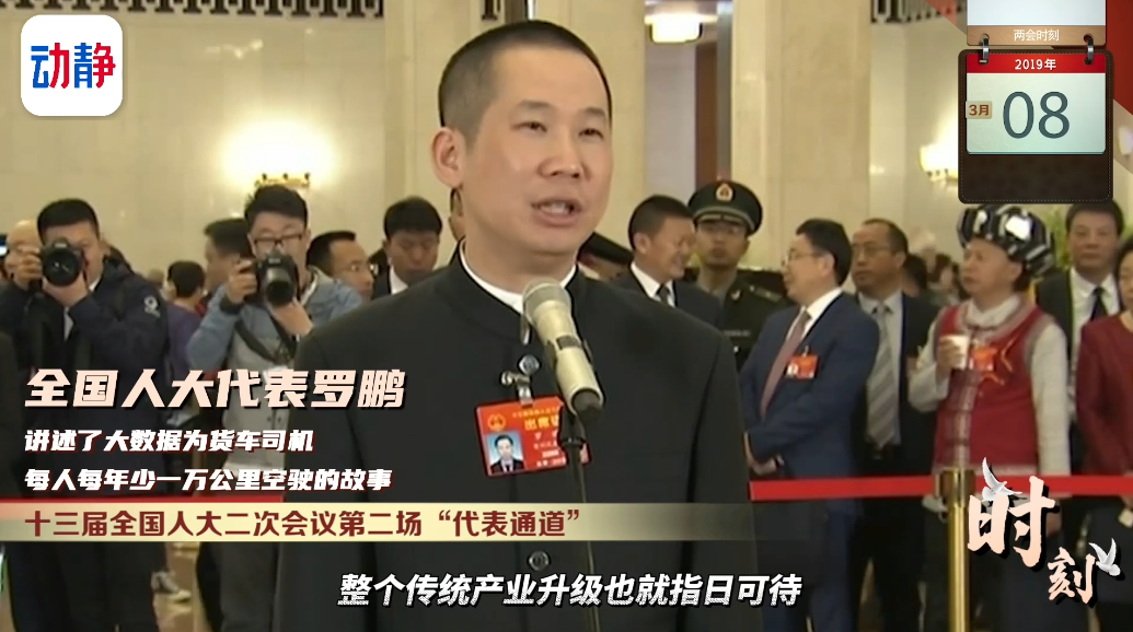 十三届全国人大二次会议第二场“代表通道”,全国人大代表罗鹏讲述了大数据为货车司机每人每年少一万公里空驶的故事。他说,把货车由大数据的旁观者变成使用者、获益者,有了实惠,每个环节的生产效率得到了提高,整个传统产业的升级也就指日可待。