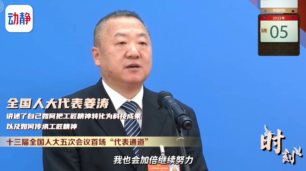 十三届全国人大五次会议首场“代表通道”,全国人大代表姜涛讲述了自己如何把工匠精神转化为科技成果,以及如何传承工匠精神。姜涛向记者介绍,作为一名全国人大代表,他会加倍继续努力,发挥好人大代表应尽的职责,大力弘扬工匠精神,做好技能传承,培养更多的大国工匠,为实现中国梦、强国梦贡献力量。
