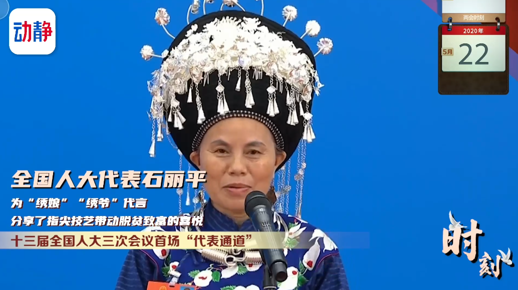 十三届全国人大三次会议首场“代表通道”,全国人大代表石丽平为“绣娘”“绣爷”代言,分享了指尖技艺带动脱贫致富的喜悦。石丽平的“鸽子花”苗绣销往了67个国家和地区,现在像松桃苗绣这样的技艺,在贵州已带动了50多万妇女就业。