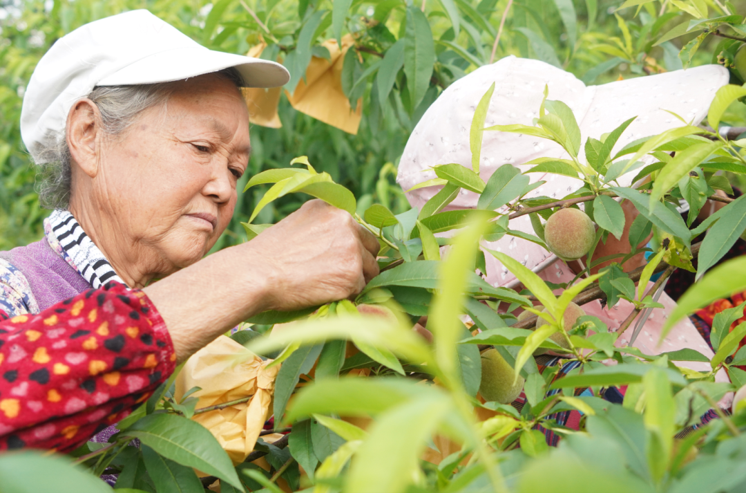 “对桃子进行套袋处理,既能防治病虫害,又能使桃子光泽好、口味好,更受顾客青睐。”黑水镇副镇长胡飞说。