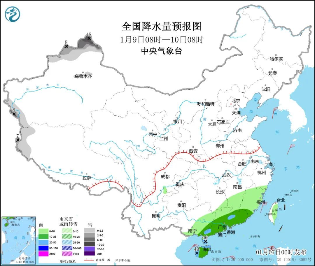 北方则在新疆北部有持续性降雪