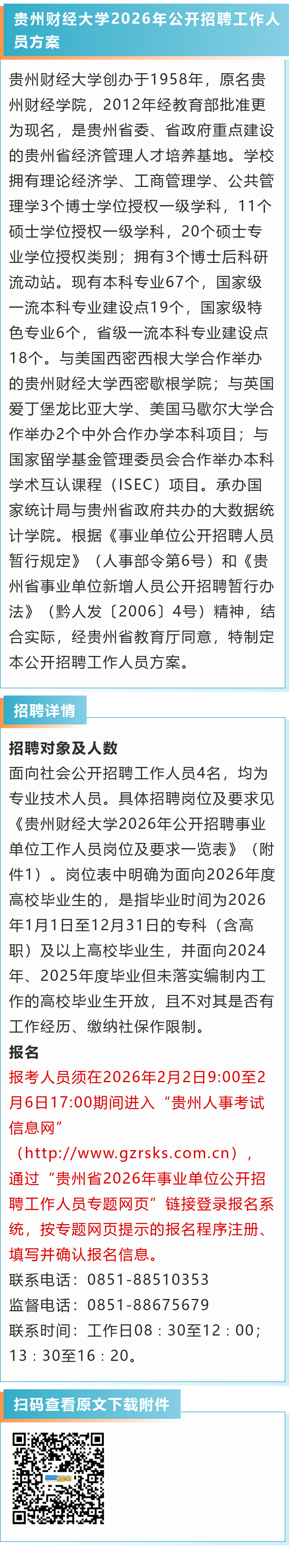 【事业单位】贵州财经大学招聘!报名截止时间:2月6日!