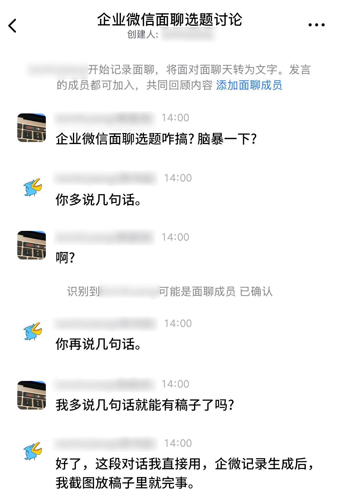 这是企业微信新上线的「记录面聊」能力。