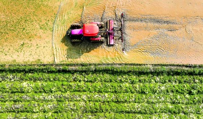 重庆垫江县沙坪镇,村民开着农机在高标准农田里打田,为育秧做准备。龚长浩摄/光明图片
