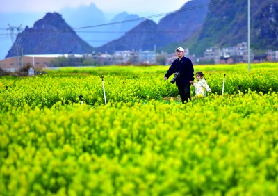 游人在广西钟山县公安镇梁屋村油菜花海中赏花观景。廖祖平摄/光明图片