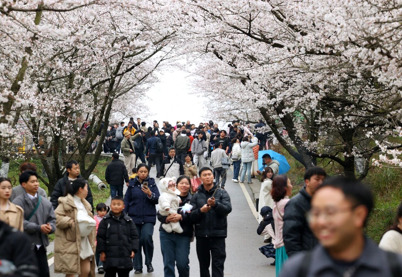 3月7日,尽管天空飘着零星小雨,但游客的热情却丝毫未减。从清晨开始,四面八方的人们陆续涌入贵安樱花园,在这片粉色海洋里留下欢声笑语。开园首日,交通接驳、入园引导、业态配套、文化体验等各项服务运行顺畅,为游客带来舒心体验。