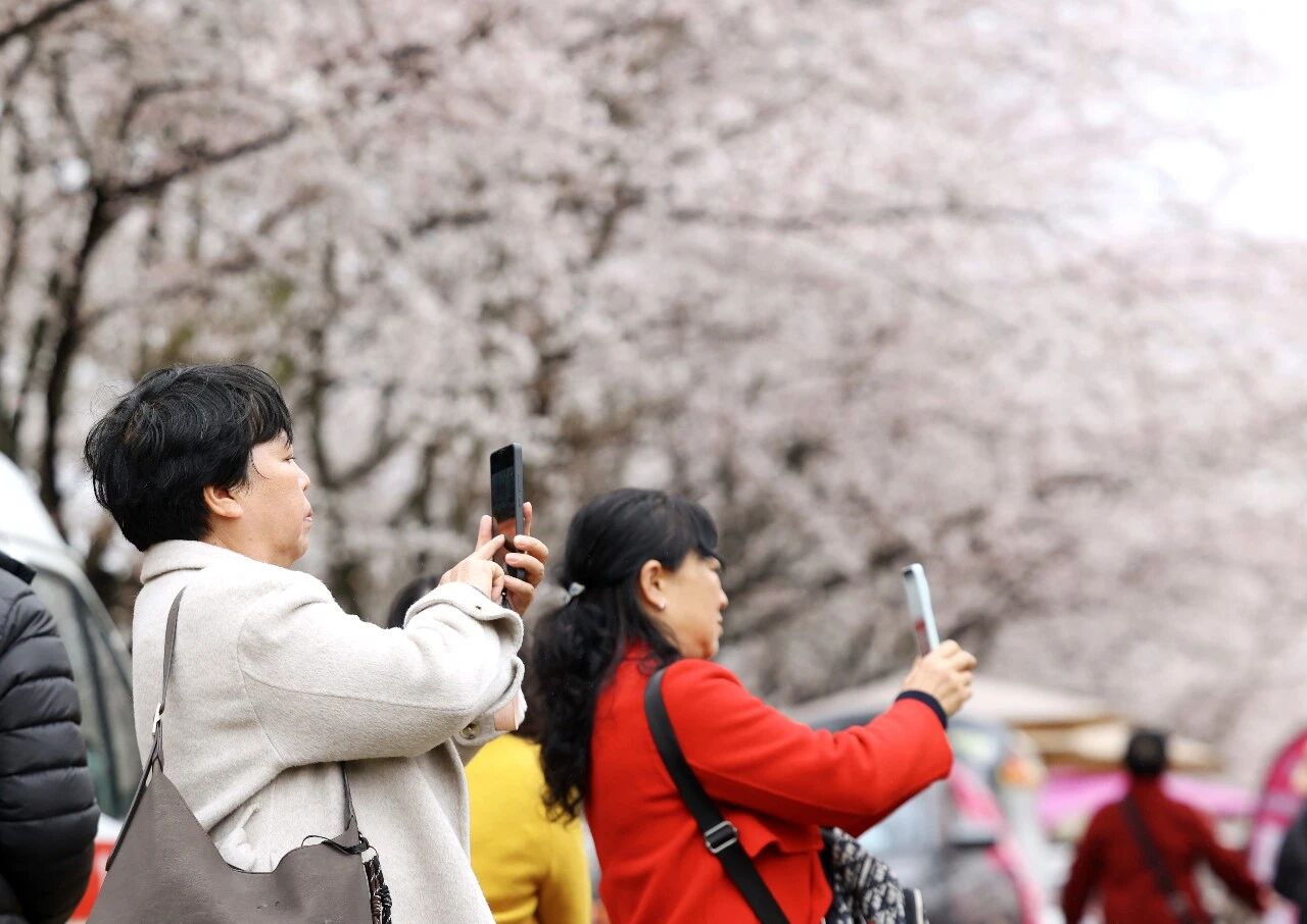 步道上,众多游客或缓步而行,或驻足细看,或在繁花下留影,感受美好春日瞬间。“今年花开得特别好,虽然今天下雨,但雨中赏樱别有情调。”一位摄影爱好者边调焦距边赞叹。