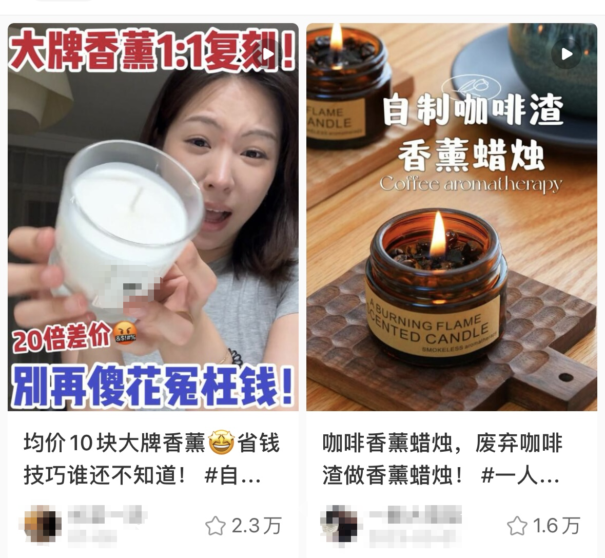 如今,大家已经不满足于购买市场上的香薰蜡烛。不少人还在社交媒体上分享自己制作手工香薰蜡烛的过程,看起来简单又治愈,看视频的时候不禁也想动手DIY一下。