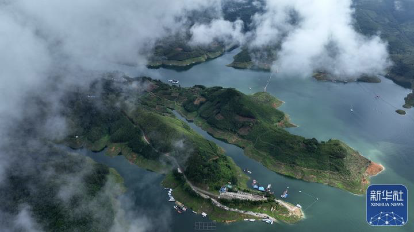 8月25日拍摄的贵州省黔西南布依族苗族自治州兴义市万峰湖景区风光(无人机照片)。新华社记者 杨楹 摄