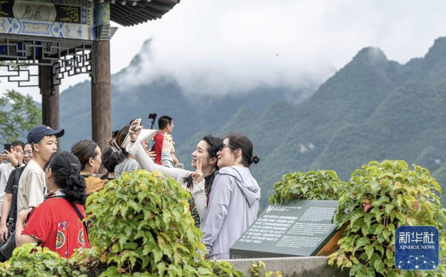 8月25日,游客在贵州省黔西南布依族苗族自治州兴义市万峰林景区赏景游玩。新华社发(吴常琛 摄)