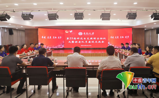 中南大学举行第25届研究生支教团出征仪式暨新老队员座谈交流会。图为座谈交流会现场。中南大学研支团供图
