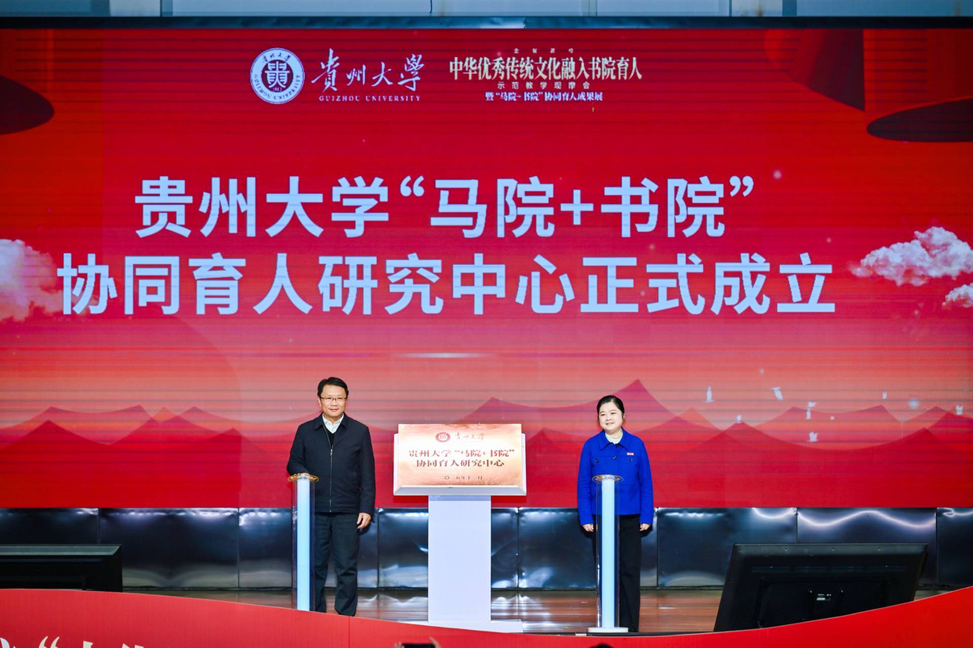 在与会领导与嘉宾的共同见证下,活动现场举行了贵州大学“马院+书院”协同育人研究中心揭牌仪式,标志着该校在深化协同育人理论研究与实践探索方面迈出了新的一步。