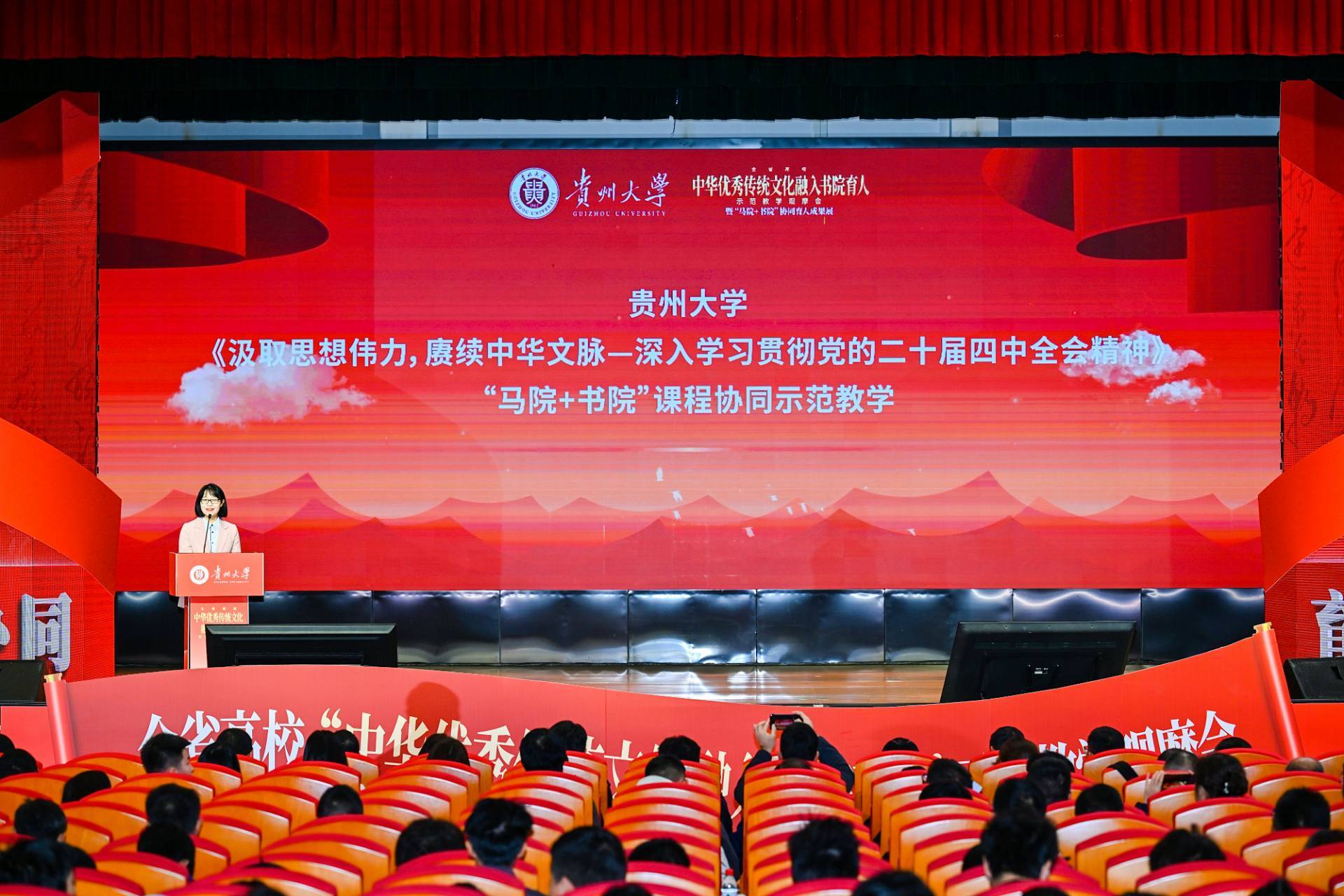 为深入推动中华优秀传统文化创造性转化、创新性发展,探索新时代“大思政课”育人新路径,11月12日,全省高校“中华优秀传统文化融入书院育人”示范教学观摩会暨“马院+书院”协同育人成果展示活动在贵州大学举办。