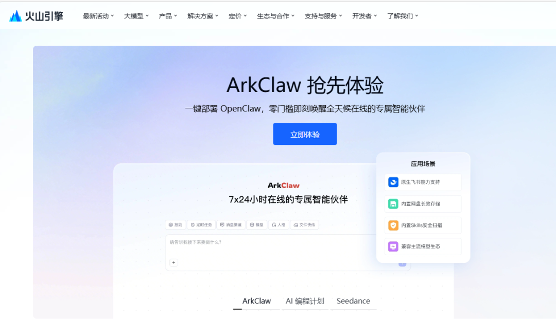 ▲ArkClaw官网截图