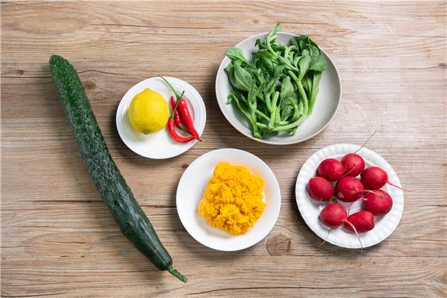 胭脂萝卜1碟 冰草1盘 黄瓜1根