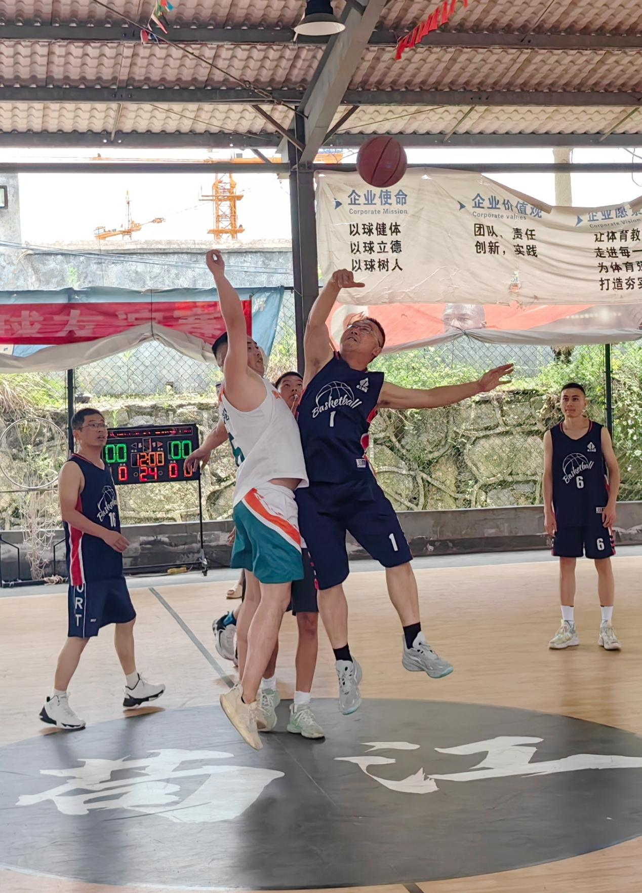 随着裁判一声哨响,总部“深藏Blue队”和遵义仓储设施建设项目“摸鱼突击队”在赛场上展开了激烈的对决,“深藏Blue队”凭借日常训练积累的默契,开场便以流畅的传球配合率先得分。“摸鱼突击队”则凭借一线职工敢打敢拼的冲劲,迅速调整战术,利用内线优势紧追比分。双方交替领先的比分、精彩的抢断与上篮,点燃了全场观众的热情,加油声、呐喊声此起彼伏。最后,总部“深藏Blue队”以微弱的比分赢得了比赛。