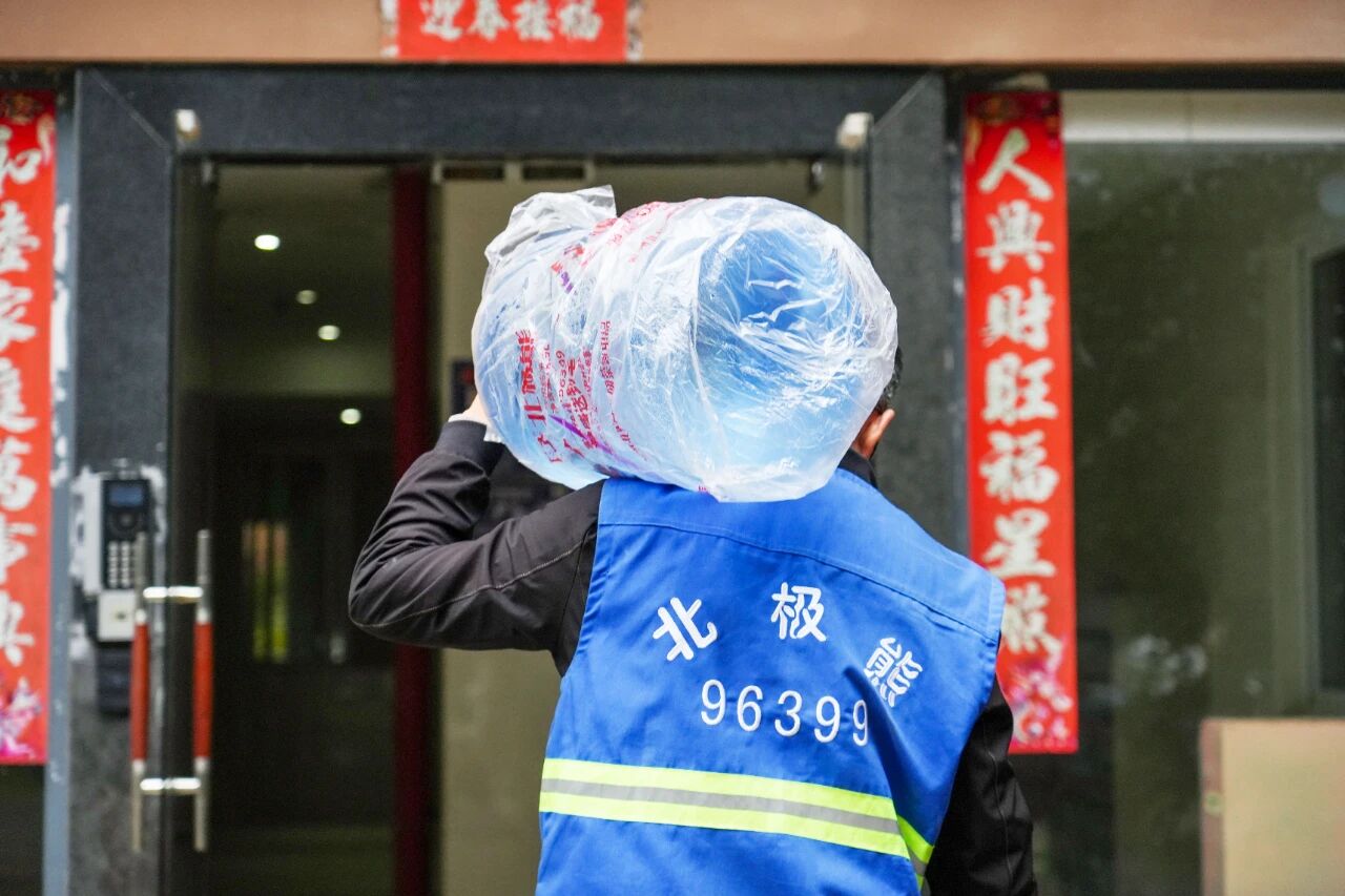 转变从一些小事开始。帮腿脚不便的大爷扔垃圾,帮独居的阿姨换灯泡,给加班到晚的年轻人取快递⋯⋯这些看似与送水无关的举手之劳,却成了打开客户心门的钥匙。渐渐地,小区居民认识了这位总是面带笑容、乐于助人的送水员。送水量也从最初的十几桶,逐渐增加到三十几桶,如今已达到五六十桶。