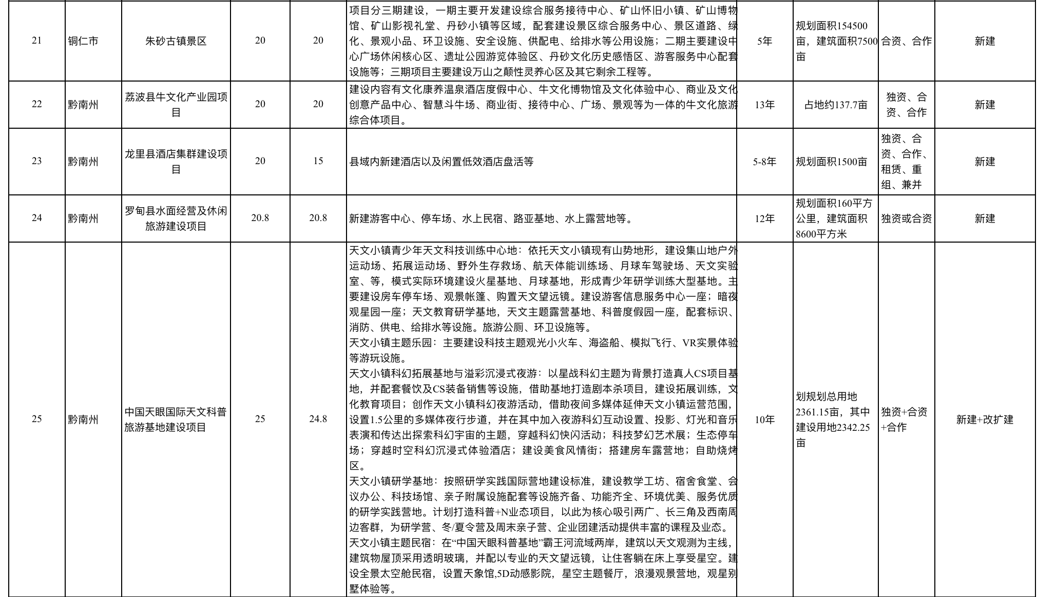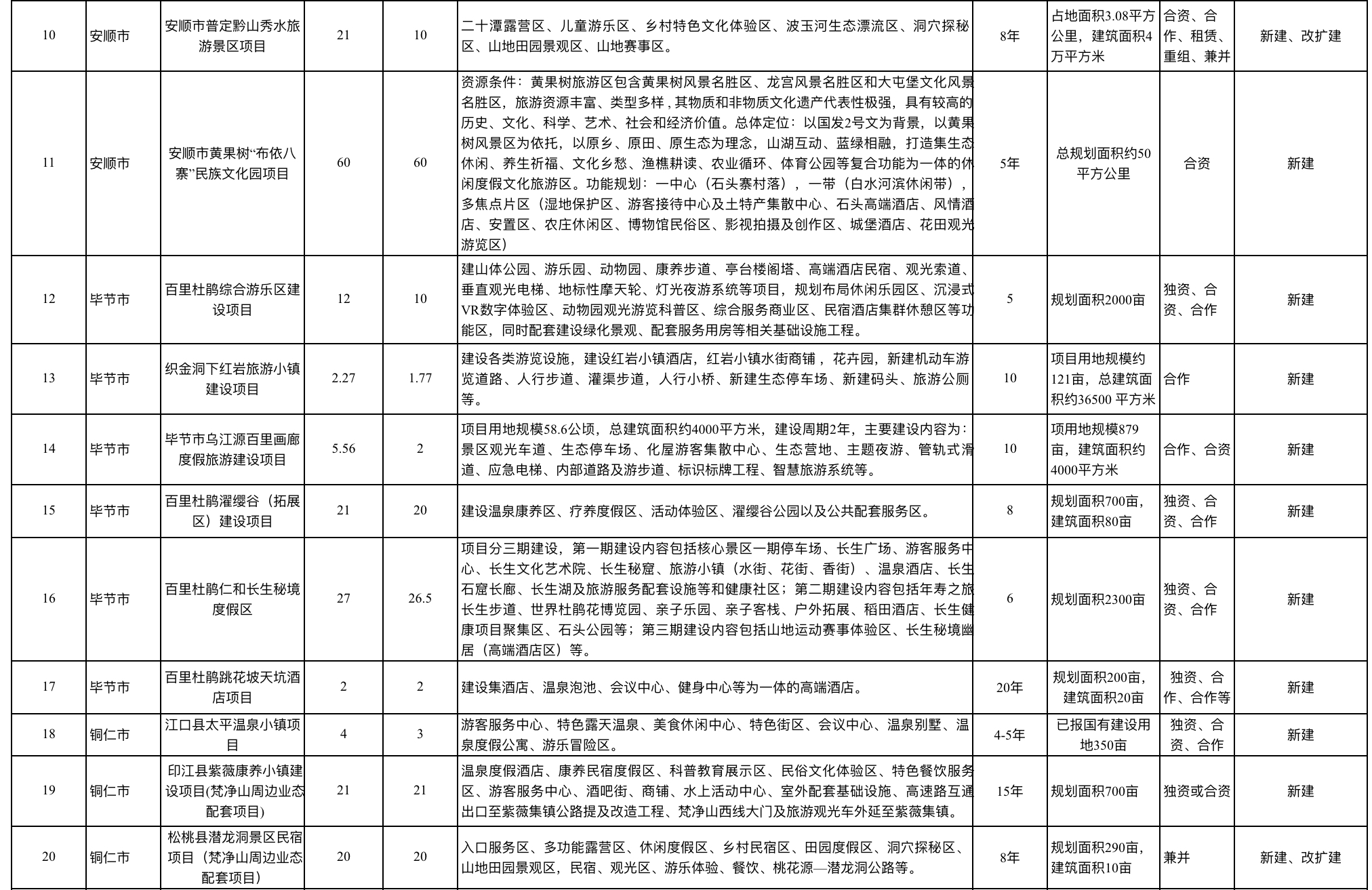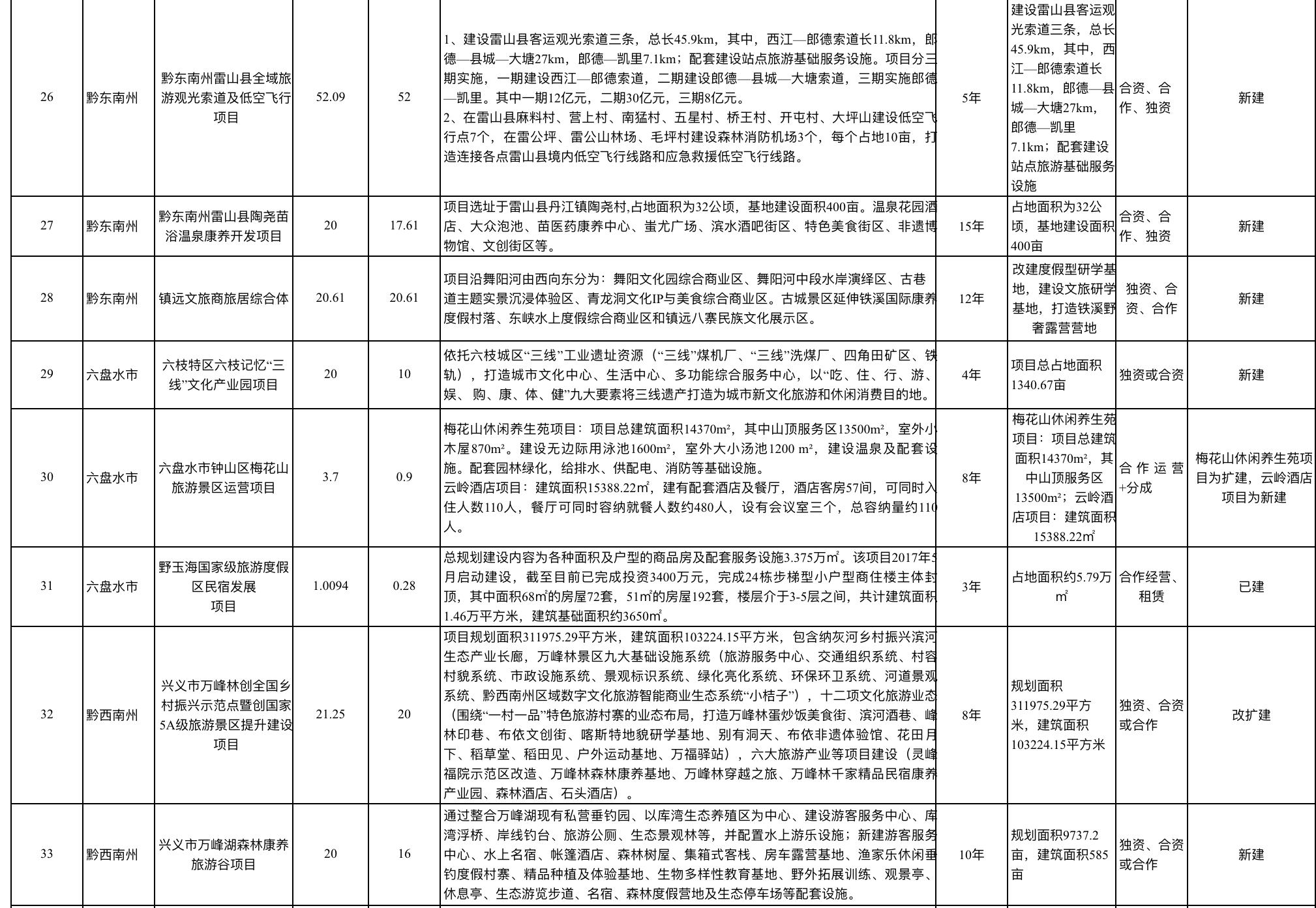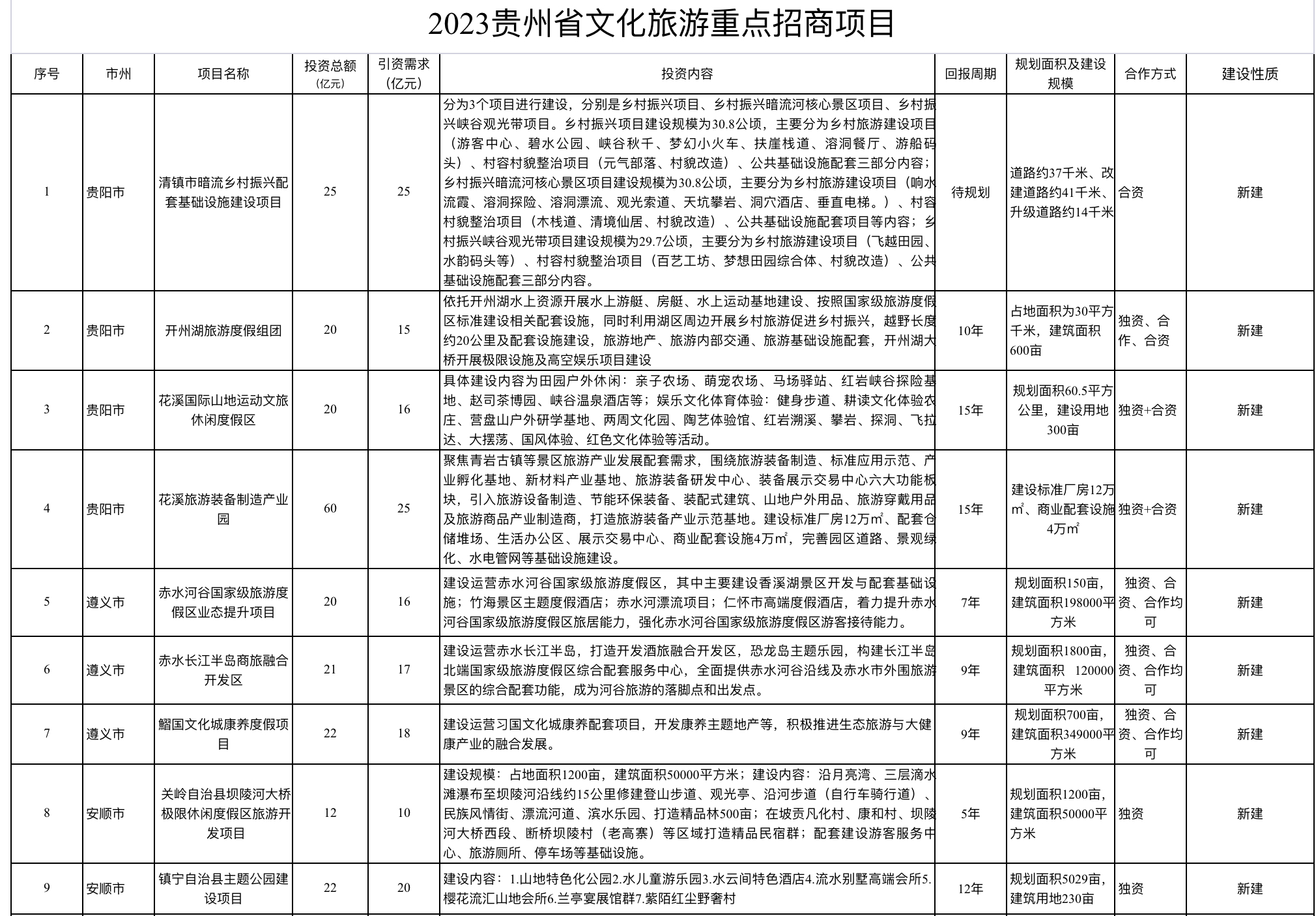 2023贵州省文化旅游重点招商项目